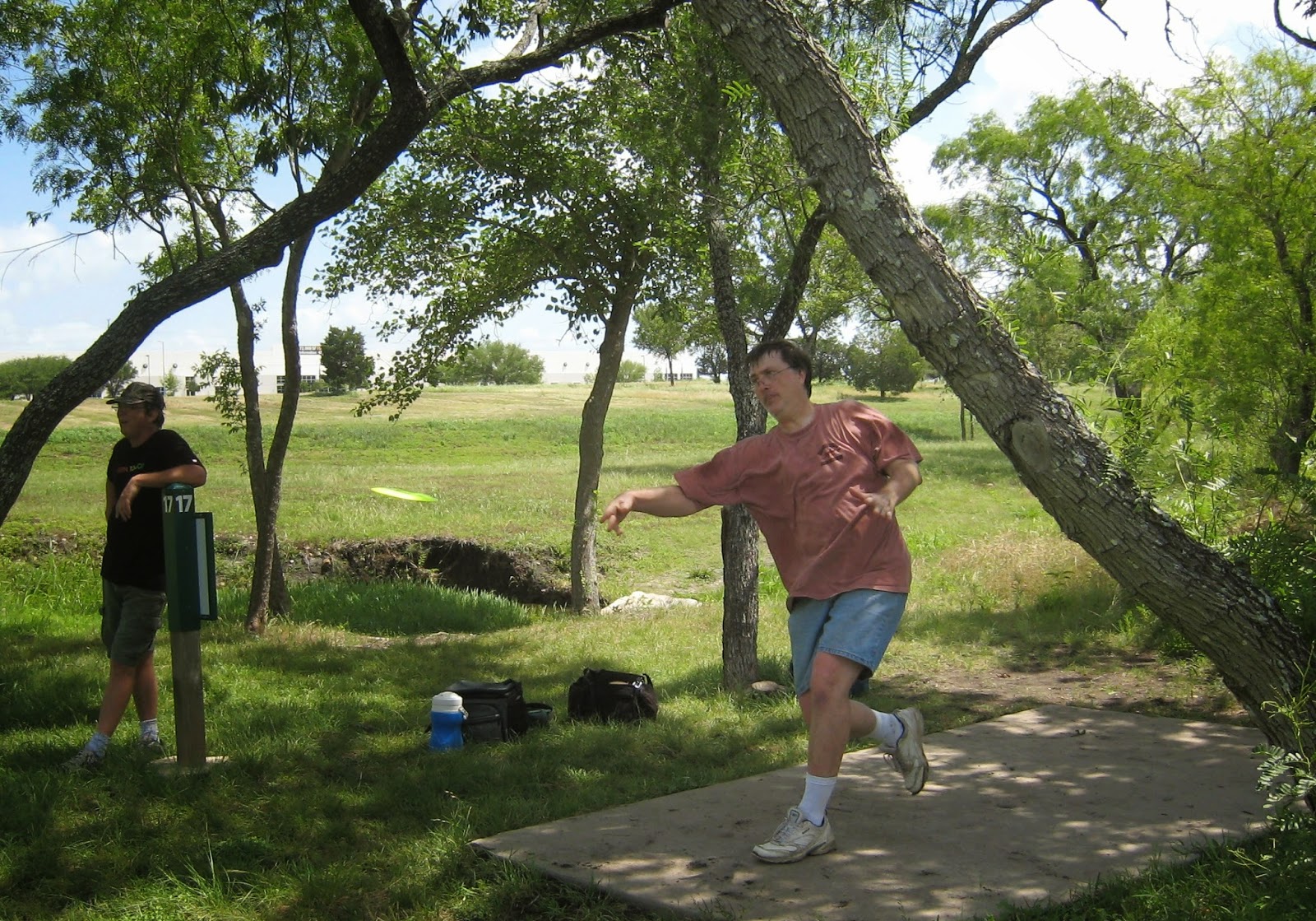 Today was Father's Day and we played the MetCenter DGC in southeast Austin. Today's group was comprised of: Lif, Dave, Steve, Bob, Keith, Brian and me. Keith had to bail out after #12 to drive to San Antonio. The weather conditions were sunny and warm with a fairly good breeze. The course was not crowded at all, maybe three other groups out there, a refreshing change from last week at Searight.